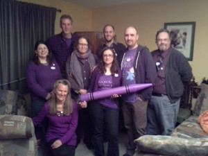 Tickled Purple to be in Publishers Weekly Brief — My husband and I were fortunate to be invited to the most amazing, fantastic, glorious kid-lit centered party – hosted by children’s librarian extraordinaire, Kim Faurot (and her husband Brad). I cannot begin to tell you how much fun it was to be in a house surrounded by the art of children’s books — surrounded by people who love children’s books — playing silly games and eating yummy food inspired by — you guessed it — children’s books. It was honestly a magical night.
