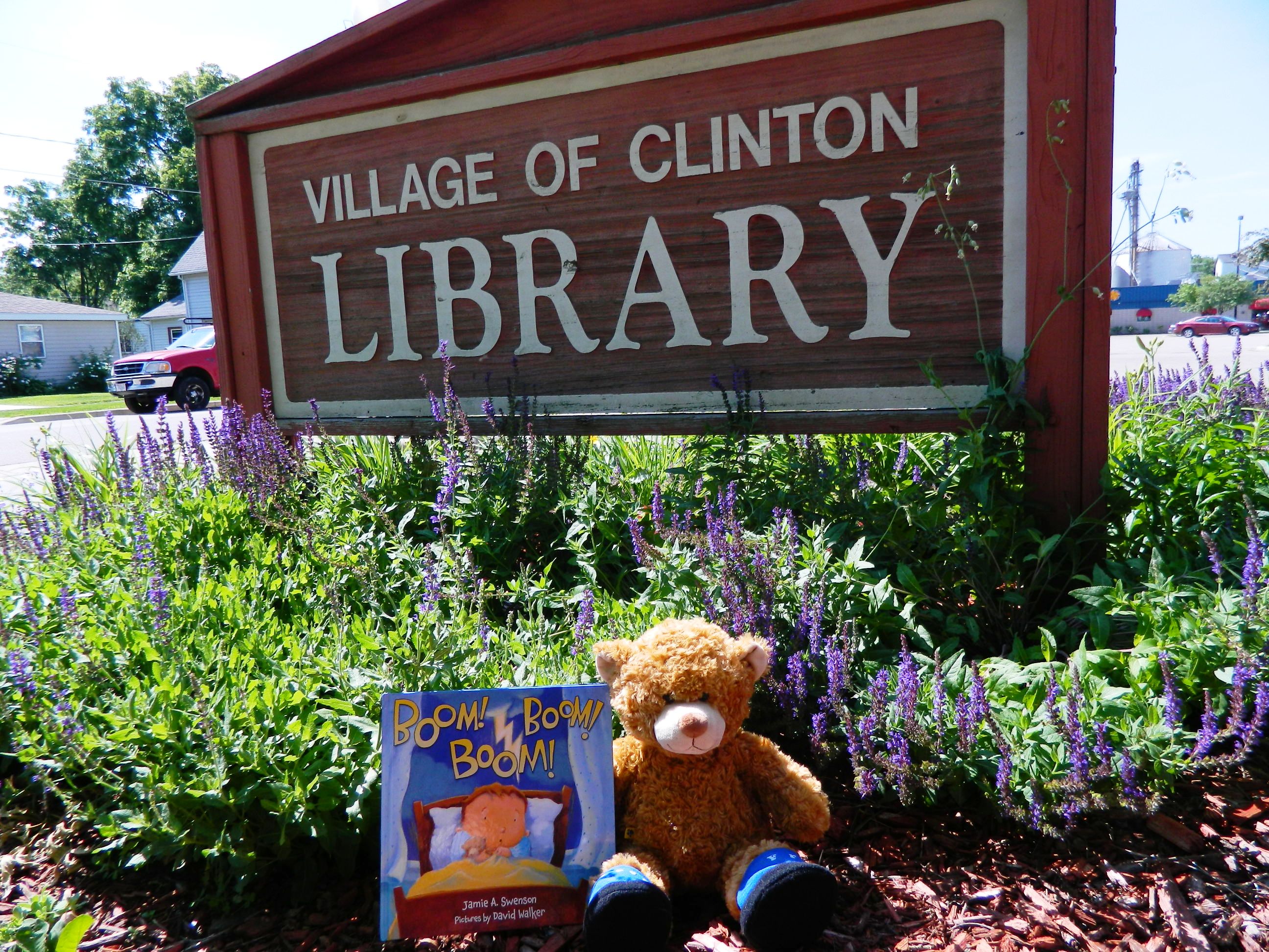 You know, there are some truly amazing librarians and library volunteers out there — and my visit to Clinton this morning proves it. Miss Shawn (holding BOOM! BOOM! BOOM! & Fred the Bear) wears many hats in her small library — including engineer — “All About the Storytime Train! Chugga Chugga Choo! Choo!” she