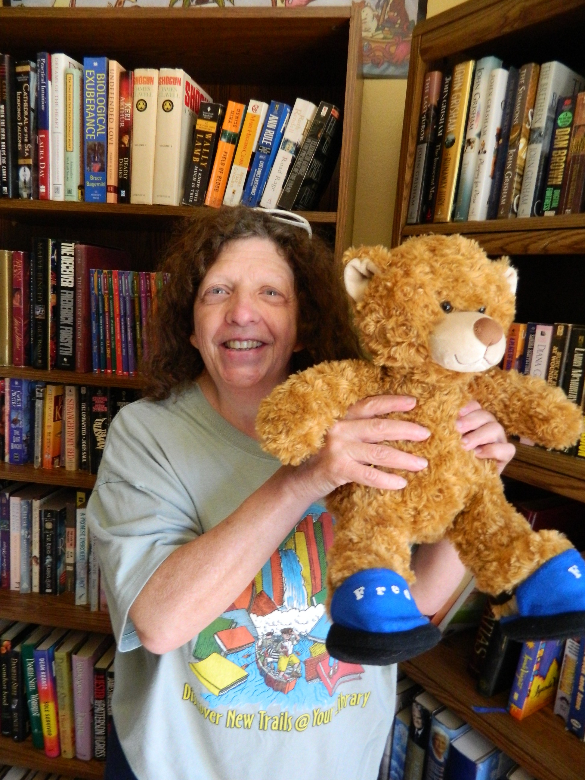 And where would a library be without volunteers? (pict. below) Here’s one of Clinton’s best volunteers — with Fred (of course!).